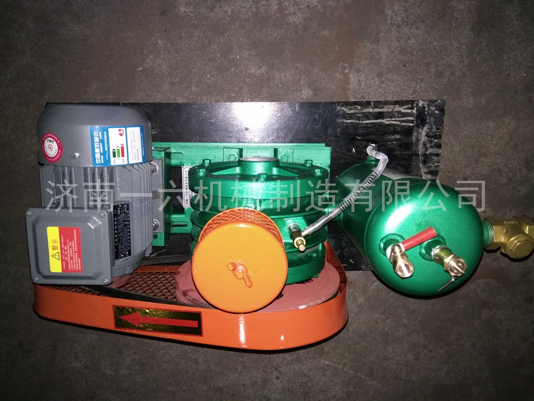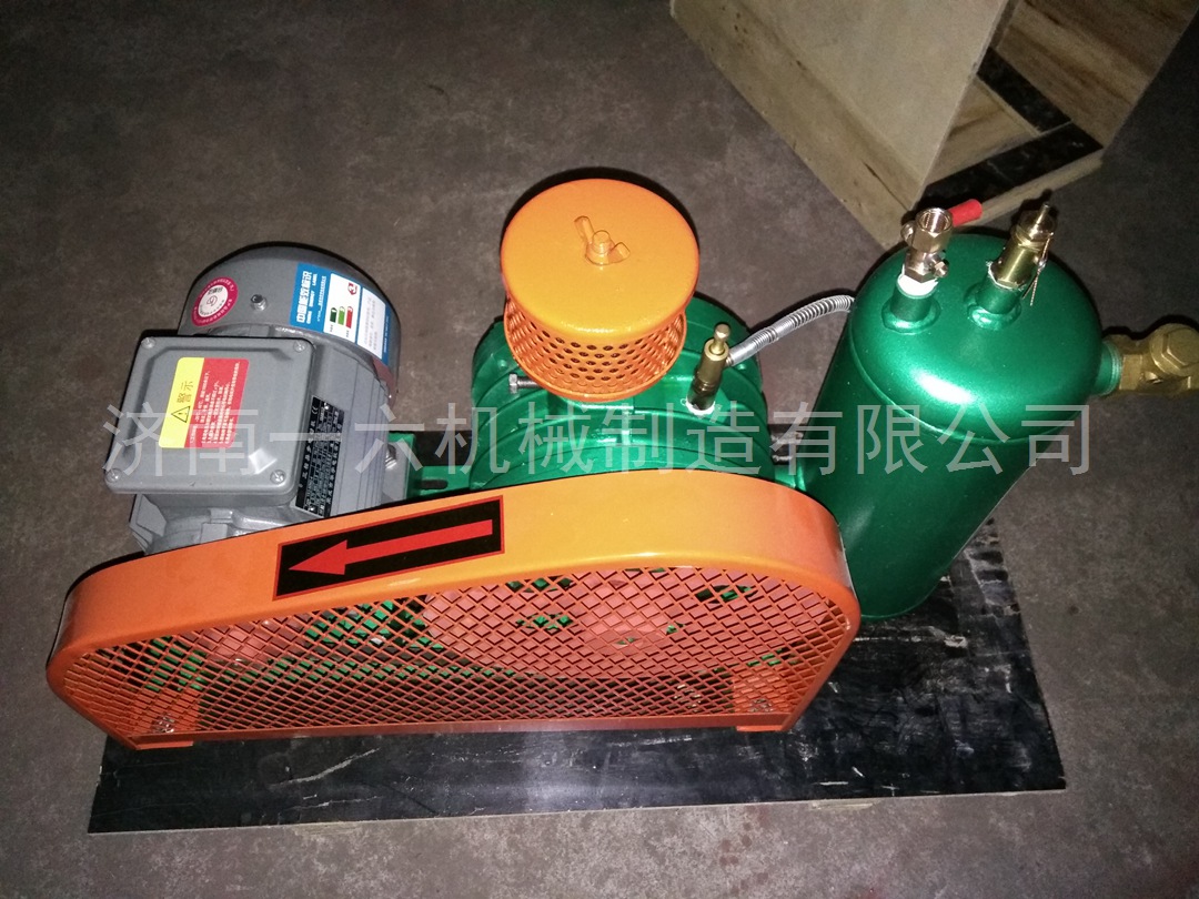 一六回转式鼓风机结构精巧,主要由下列六部分组成:电机、空气过滤器、鼓风机本体、空气室、底座(兼油箱)、滴油嘴。鼓风机靠汽缸内偏置的转子偏心运转,并使转子槽中的叶片之间的容积变化将空气吸入、压缩、吐出。在运转中利用鼓风机的压力差自动将润滑送到滴油嘴,滴入汽缸内以减少摩擦及噪声,同时可保持汽缸内气体不回流。